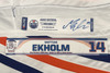 Welcome to the Edmonton Oilers Community Foundation 2025 Online Charity Auction! Show your support for the Foundation and the great charitable initiatives they undertake in Oil Country by bidding on this Mattias Ekholm #14 - 2025-26 Edmonton Oilers Pre-Game Warm-Up Worn Tribute Jersey From Adam Henrique's 1000th NHL Game On October 21, 2025. On this night the team wore a brand new road set of Oilers white jerseys made by Fanatics for the pre-game warm-up only honouring Adam Henrique's 1000th NHL game. The jerseys were all customized with HENRIQUE on the name bar and his #19 on the back. The respective player who wore the jersey had their normal jersey number on the sleeves. A special commemorative 1000th NHL Game patch was added to the right shoulder honouring Henrique's milestone game. The jersey also features a special uniform set tag with unique serial # sewn into the inside bottom hem. The tag reads "ADAM HENRIQUE 1000TH NHL GAME, PRE-GAME WARM UP SET, OCT 21, 2025 VS OTTAWA SENATORS" along with the player's jersey # and surname. In addition, an Edmonton Oilers Game-Worn Jersey Inventory serial #D00188 unique to this jersey only is imprinted on the edge of the set tag. This particular jersey is a size 58 and was worn by Oilers defenseman Mattias Ekholm and is crested with his #14 on the sleeves. As is to be expected there is no significant wear considering the jersey was only worn for the pre-game warm-up and washed following the game. Lastly the jersey comes nicely autographed in silver marker by Adam Henrique on the back #9 and the respective player who wore it in blue marker on the inside set tag. In addition to the set tag certification mentioned above the jersey comes complete with a Letter of Authenticity from the Edmonton Oilers Hockey Club.