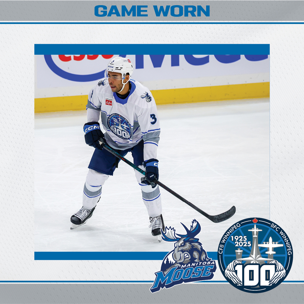 You are bidding on an authentic size 58 Manitoba Moose CFB Winnipeg 100th Anniversary Jersey. This unique CFB Winnipeg 100th Anniversary jersey was worn during warmup and 1st period for the game on November 26, 2025, when the Manitoba Moose took on the Belleville Senators. All winning bidders will receive an Official Manitoba Moose Hockey Club Certificate of Authenticity and will have the option to have the player autograph their jersey at a date determined by the hockey club. Date and player availability to be determined. Local winners have the option to pick up this item.