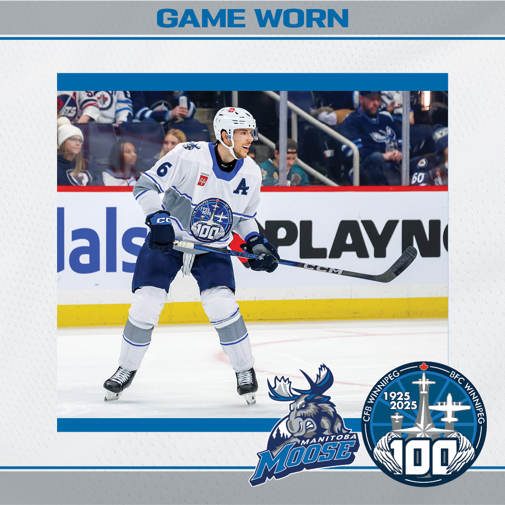 You are bidding on an authentic size 56 Manitoba Moose CFB Winnipeg 100th Anniversary Jersey. This unique CFB Winnipeg 100th Anniversary jersey was worn during 2nd and 3rd period for the game on November 26, 2025, when the Manitoba Moose took on the Belleville Senators. All winning bidders will receive an Official Manitoba Moose Hockey Club Certificate of Authenticity and will have the option to have the player autograph their jersey at a date determined by the hockey club. Date and player availability to be determined. Local winners have the option to pick up this item.
