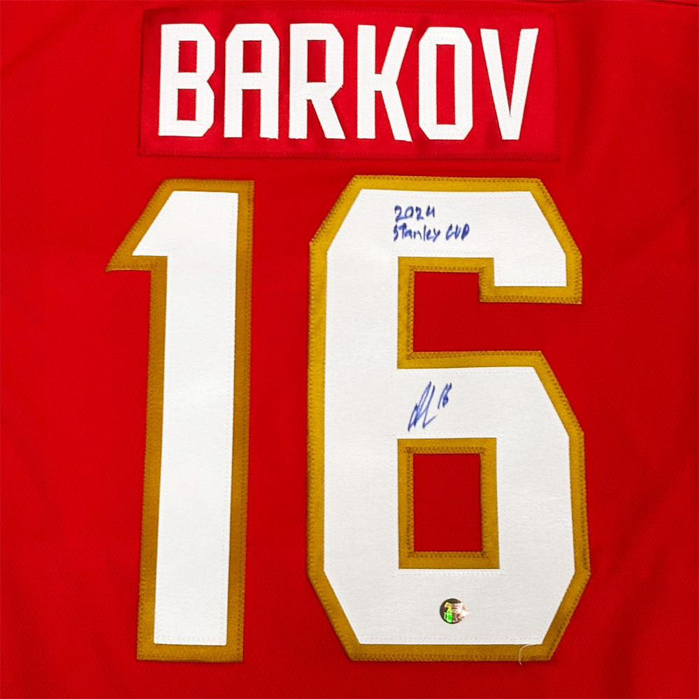 Bid on this incredible Florida Panthers Fanatics breakaway jersey that has been signed by Stanley Cup Champion - Aleksander Barkov. Barkov has inscribed it with "2024 Stanley Cup" to commemorate their championship season.