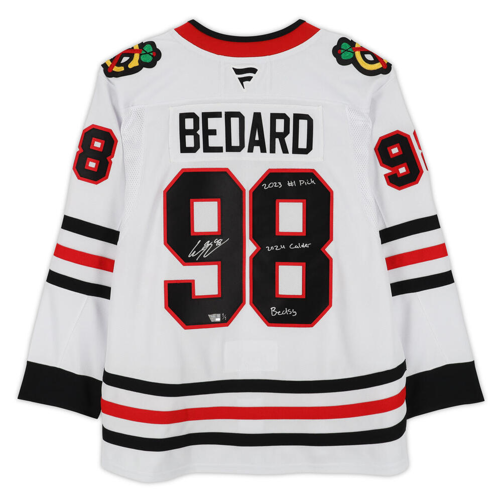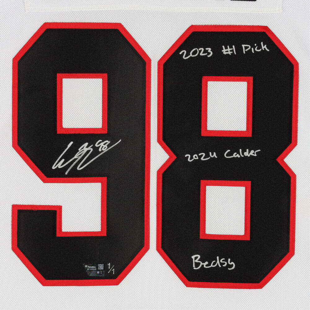 Connor Bedard Chicago Blackhawks Autographed White Fanatics Premium Jersey with Multiple Inscriptions - Limited Edition 1 of 1