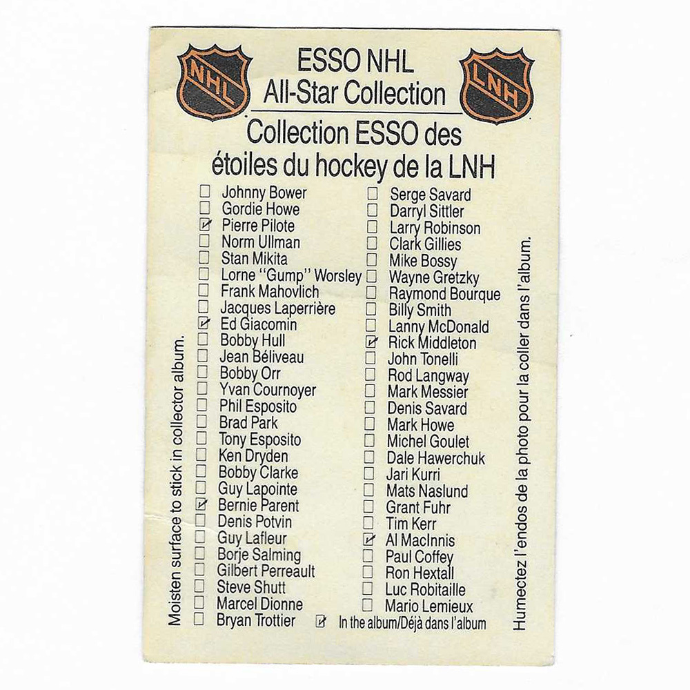 Bid on this rare 1988-89 Esso Canada sticker card that has been signed by HOF'er - Gump Worsley (deceased 2007). A few creases are visible, see image.