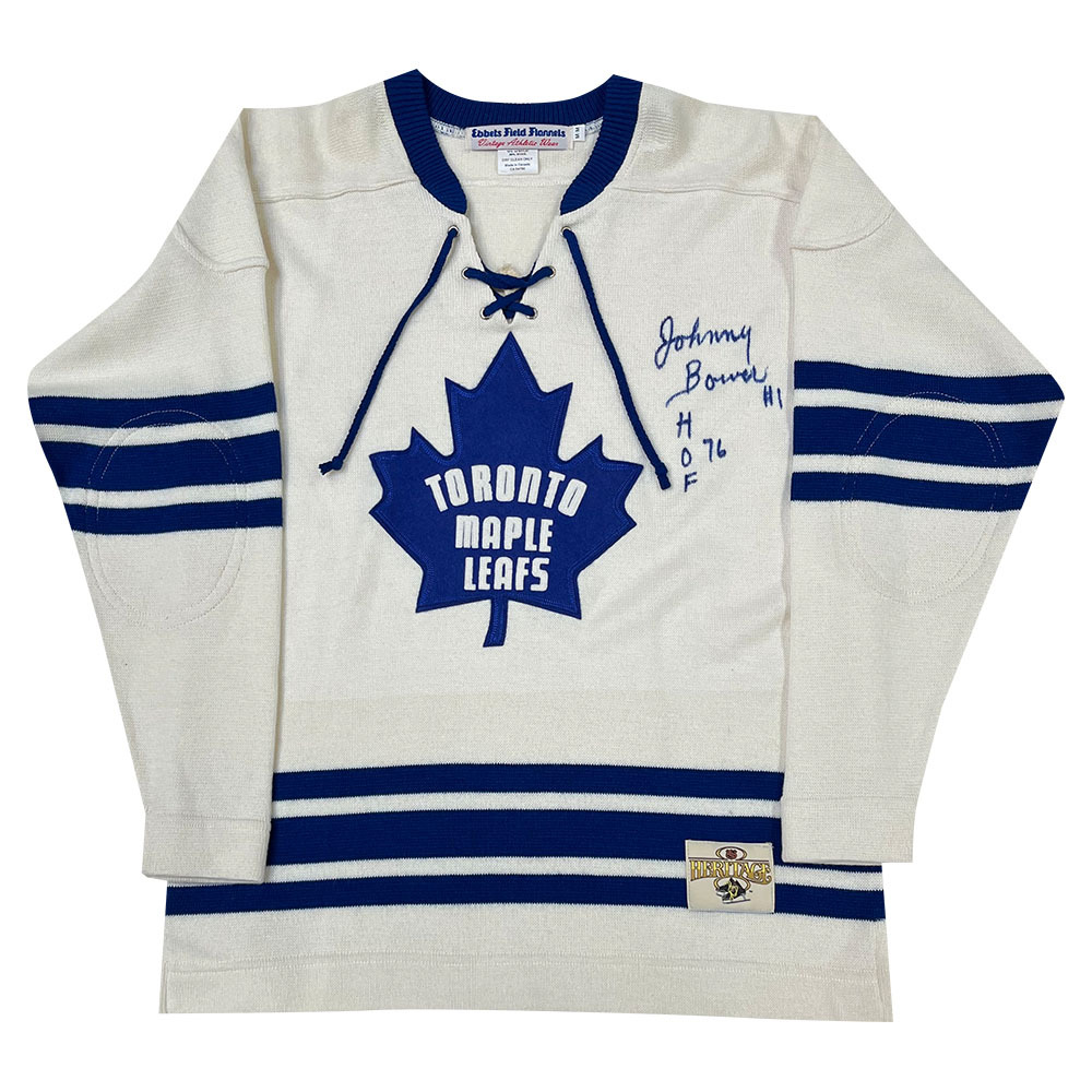 Bid on this vintage Toronto Maple Leafs wool jersey (size M) that has been signed by NHL legend - Johnny Bower. Jerseys like this are no longer manufactured and hard to find, don't miss out!