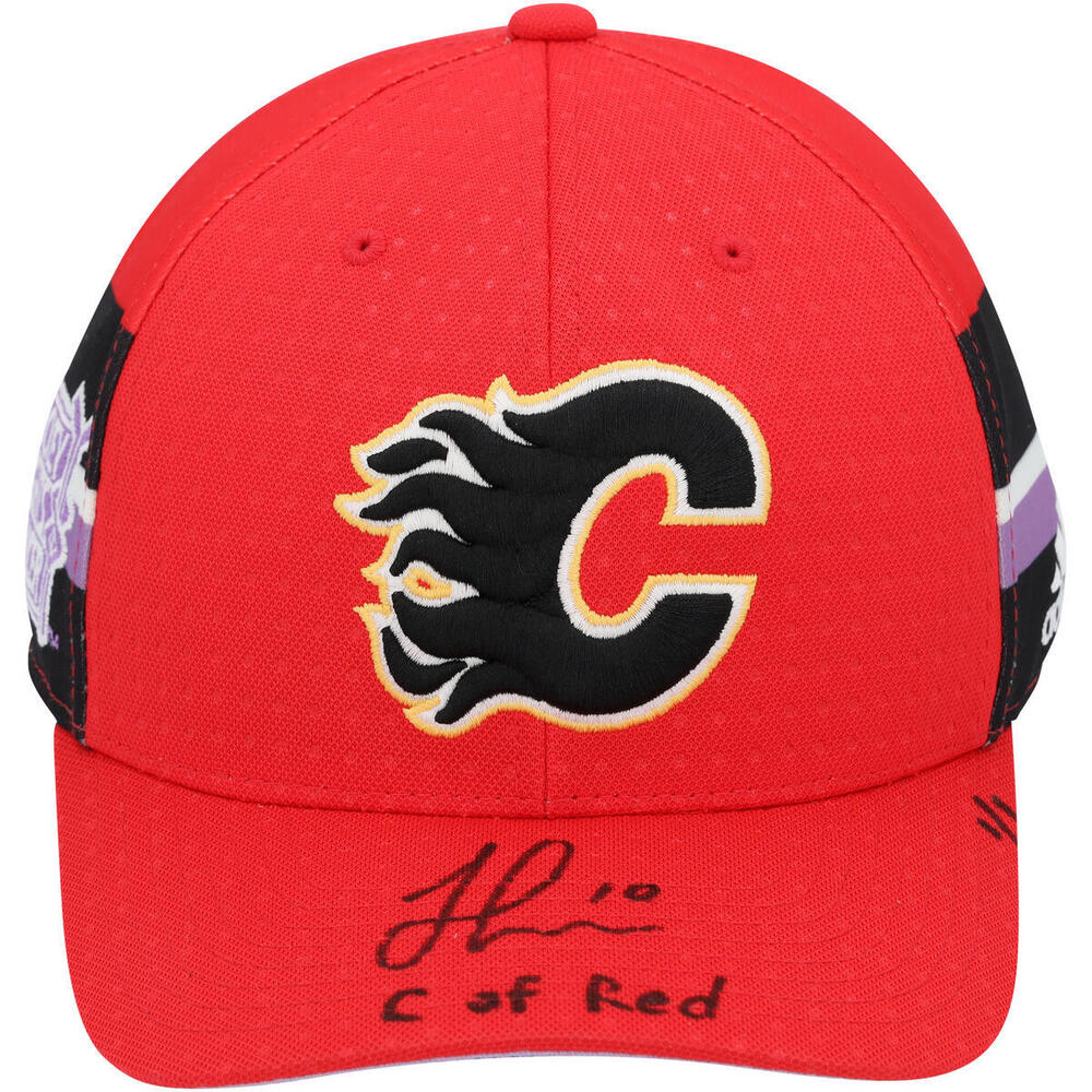 Jonathan Huberdeau Calgary Flames Autographed Hockey Fights Cancer Adidas Cap with "C of Red" Inscription - Limited Edition 1 of 1