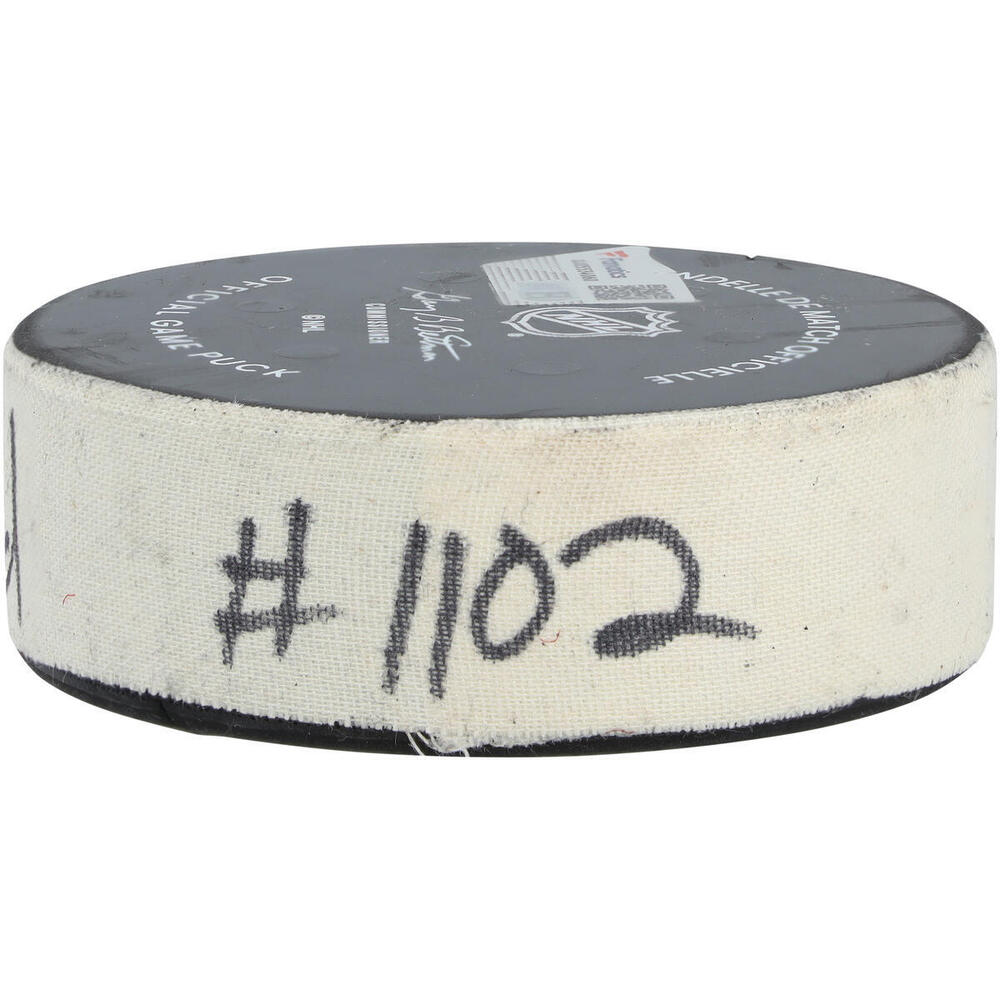 Luke Hughes New Jersey Devils Autographed Game-Used Puck vs. Winnipeg Jets on March 21, 2024 with Multiple Inscriptions
