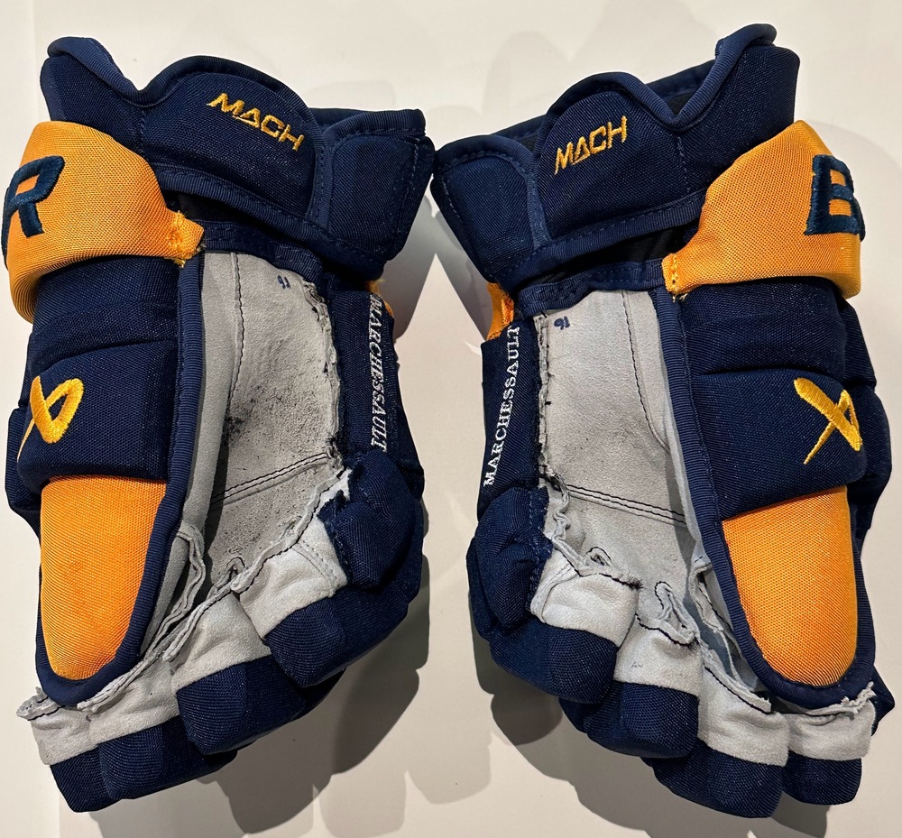 These gloves were used by Joanthan Marchessault for one of the Nashville Predators games of the 2024-25 season. Good luck bidding and thank you for supporting Hockey's Greatest Family. Each pair of gloves comes with a certificate of authenticity for your records.