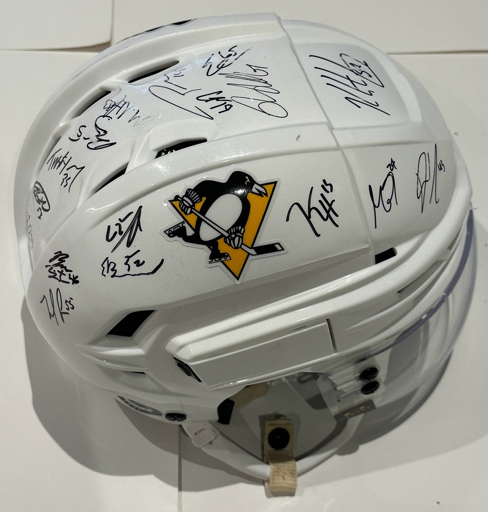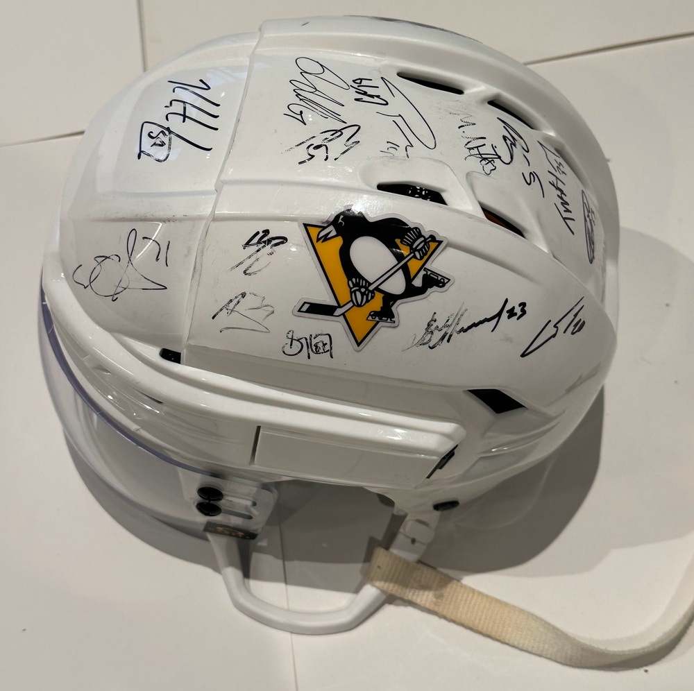 This helmet was signed by select players of the Pittsburgh Penguins during the 2024-25 season. Good luck bidding and thank you for supporting Hockey's Greatest Family. Each pair of gloves comes with a certificate of authenticity for your records.