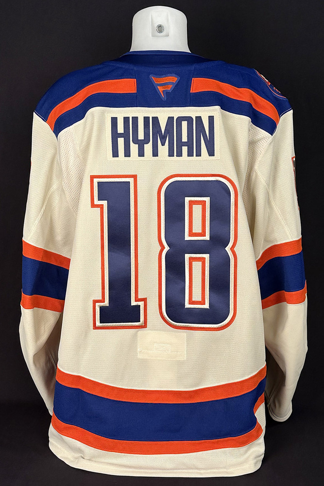 Welcome to the Edmonton Oilers Game Worn Jersey Program Online Auction! You are bidding on this #18 Zach Hyman - 2025-26 Edmonton Oilers Alternate Set #1 Game Worn Jersey - Worn For 1 Game - Dec 4th vs Seattle. The team wore this set of cream alternate jerseys for two games as follows: Oct 28th, 2026 vs Utah and December 4th vs Seattle. If the jersey was only worn by the player for one game it is noted accordingly in the auction title and reflected as such on the letter of authenticity. This Fanatics-made jersey features a special uniform set tag with a unique serial # sewn into the inside bottom hem. The tag reads "Edmonton Oilers, 2025/2026 Season Game-Worn Jersey, Alternate Set #1" along with the player's jersey # and surname. In addition, an Edmonton Oilers Game-Worn Jersey Inventory serial #D00227 unique to this jersey only is imprinted on the edge of the set tag. This particular jersey is a size 56 and was worn by Oilers forward Zach Hyman and is crested with his #18 and surname on the back. As is to be expected the game wear is very light considering the jersey was worn for only the one game and was also washed following it. It will come exactly as worn and is not autographed. In addition to the set tag certification mentioned above the jersey comes complete with a Letter of Authenticity from the Edmonton Oilers Hockey Club.