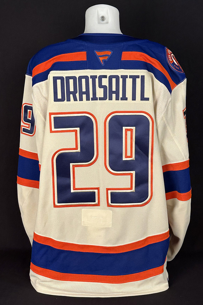Welcome to the Edmonton Oilers Game Worn Jersey Program Online Auction! You are bidding on this #28 Leon Draisaitl - 2025-26 Edmonton Oilers Alternate Set #1 Game Worn Jersey - Worn For 1 Game - Oct 28th vs Utah. The team wore this set of cream alternate jerseys for two games as follows: Oct 28th, 2026 vs Utah and December 4th vs Seattle. If the jersey was only worn by the player for one game it is noted accordingly in the auction title and reflected as such on the letter of authenticity. This Fanatics-made jersey features a special uniform set tag with a unique serial # sewn into the inside bottom hem. The tag reads "Edmonton Oilers, 2025/2026 Season Game-Worn Jersey, Alternate Set #1" along with the player's jersey # and surname. In addition, an Edmonton Oilers Game-Worn Jersey Inventory serial #D00236 unique to this jersey only is imprinted on the edge of the set tag. This particular jersey is a size 58 and was worn by Oilers forward and Assistant Captain Leon Draisaitl and is crested with his #29 and surname on the back. As is to be expected the game wear is very light considering the jersey was worn for only the one game and was also washed following it. It will come exactly as worn and is not autographed. In addition to the set tag certification mentioned above the jersey comes complete with a Letter of Authenticity from the Edmonton Oilers Hockey Club.