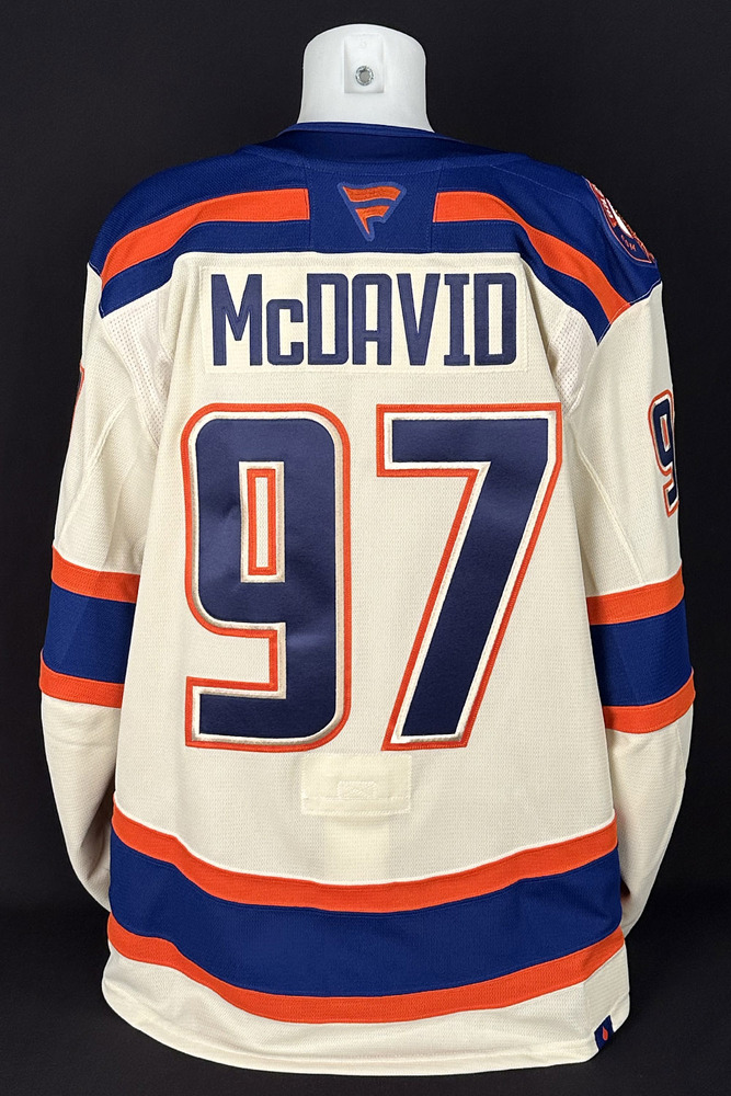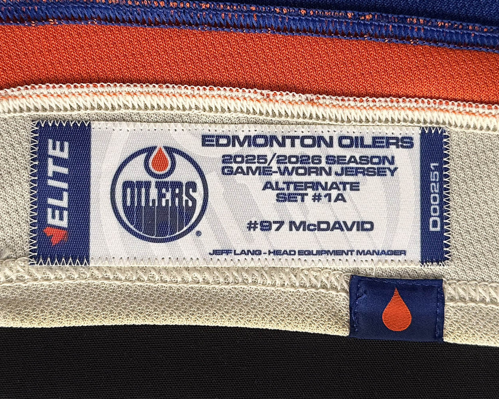 Welcome to the Edmonton Oilers Game Worn Jersey Program Online Auction! You are bidding on this #97 Connor McDavid - 2025-26 Edmonton Oilers Alternate Set #1 Game Worn Jersey - Worn For 1 Game - Oct 28th vs Utah. The team wore this set of cream alternate jerseys for two games as follows: Oct 28th, 2026 vs Utah and December 4th vs Seattle. If the jersey was only worn by the player for one game it is noted accordingly in the auction title and reflected as such on the letter of authenticity. This Fanatics-made jersey features a special uniform set tag with a unique serial # sewn into the inside bottom hem. The tag reads "Edmonton Oilers, 2025/2026 Season Game-Worn Jersey, Alternate Set #1A" along with the player's jersey # and surname. In addition, an Edmonton Oilers Game-Worn Jersey Inventory serial #D00251 unique to this jersey only is imprinted on the edge of the set tag. This particular jersey is a size 56 and was worn by Oilers forward and Team Captain Connor McDavid and is crested with his #97 and surname on the back. The jersey also has the "C" on it which was worn for this one game only in a slightly lower position. As is to be expected the game wear is very light considering the jersey was worn for only the one game and was also washed following it. It will come exactly as worn and is not autographed. In addition to the set tag certification mentioned above the jersey comes complete with a Letter of Authenticity from the Edmonton Oilers Hockey Club.