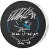 Macklin Celebrini San Jose Sharks Autographed Game-Used Puck vs. Los Angeles Kings on November 25, 2024 with Multiple Inscriptions