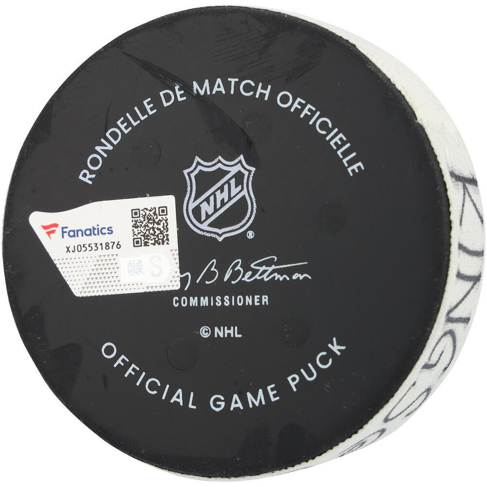 Own this Macklin Celebrini autographed game-used puck from the November 25, 2024 game against the Los Angeles Kings. This puck was collected by Fanatics Authentic in conjunction with the NHL and comes with an individually numbered, tamper-evident hologram. To ensure authenticity, the hologram can be verified online. This process helps to ensure that the product purchased is authentic and eliminates any possibility of duplication or fraud. Please note: This item is game-used and sold in "as-is" condition.