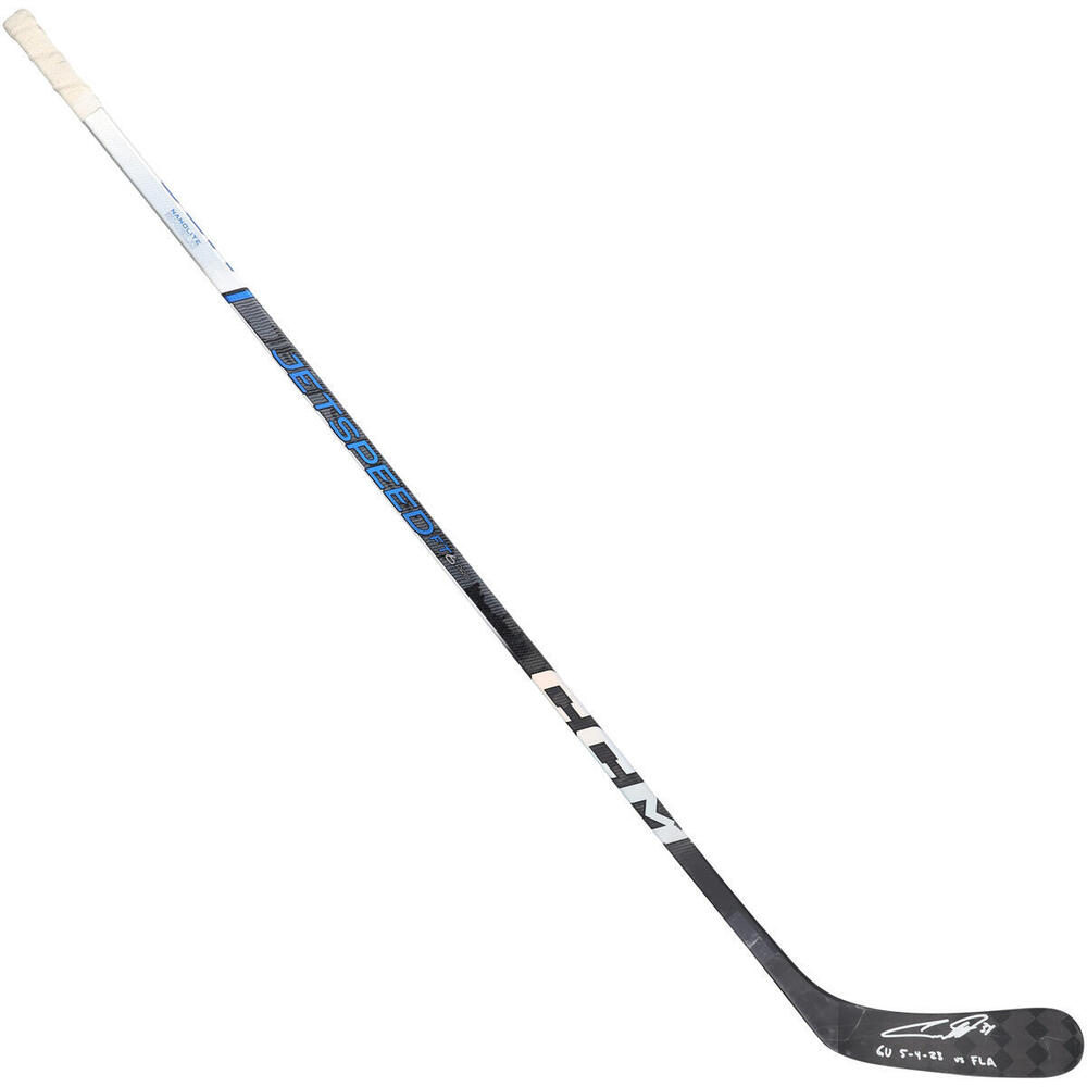 Own this Auston Matthews autographed game-used stick from the May 4, 2023 game against the Florida Panthers. This stick was collected by Fanatics Authentic in conjunction with the NHL and comes with an individually numbered, tamper-evident hologram. To ensure authenticity, the hologram can be verified online. This process helps to ensure that the product purchased is authentic and eliminates any possibility of duplication or fraud. Please note: This item is game-used and sold in "as-is" condition.