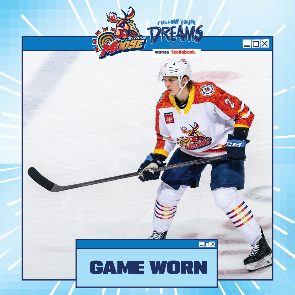 You are bidding on an authentic size 56 Manitoba Moose Follow Your Dreams Jersey. This unique Follow Your Dreams jersey was worn during 2nd and 3rd period on January 25, 2026, when the Manitoba Moose took on Grand Rapids Griffins. All proceeds from the auction will benefit Winnipeg Aboriginal Sports Achievement Center. All winning bidders will receive an Official Manitoba Moose Hockey Club Certificate of Authenticity and will have the option to have the player autograph their jersey at a date determined by the hockey club. Date and player availability to be determined. Local winners have the option to pick up this item.