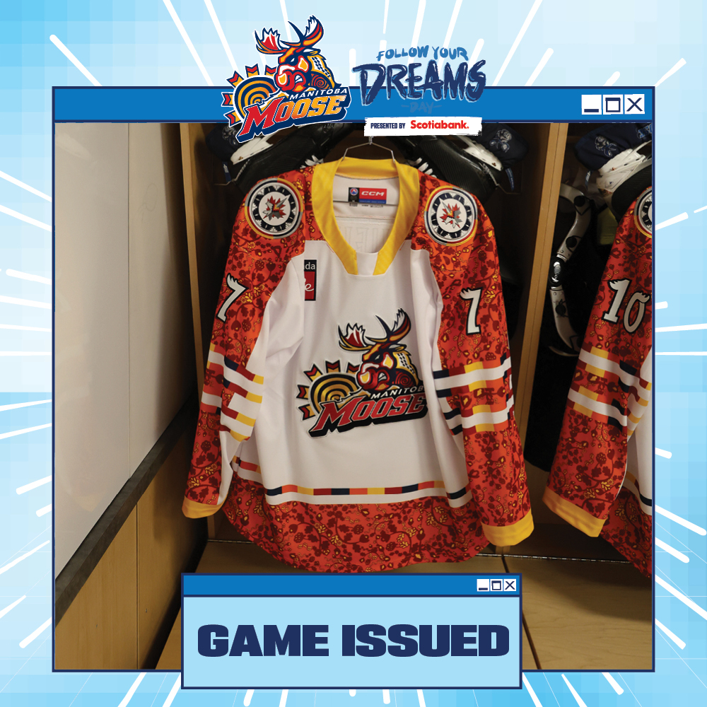 You are bidding on an authentic size 56 Manitoba Moose Follow Your Dreams Jersey. This unique Follow Your Dreams jersey was game issued for January 25, 2026, when the Manitoba Moose took on Grand Rapids Griffins. All proceeds from the auction will benefit Winnipeg Aboriginal Sports Achievement Center. All winning bidders will receive an Official Manitoba Moose Hockey Club Certificate of Authenticity and will have the option to have the player autograph their jersey at a date determined by the hockey club. Date and player availability to be determined. Local winners have the option to pick up this item.