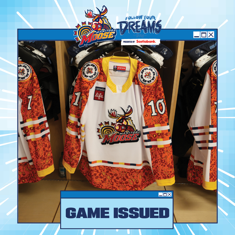You are bidding on an authentic size 56 Manitoba Moose Follow Your Dreams Jersey. This unique Follow Your Dreams jersey was game issued for January 25, 2026, when the Manitoba Moose took on Grand Rapids Griffins. All proceeds from the auction will benefit Winnipeg Aboriginal Sports Achievement Center. All winning bidders will receive an Official Manitoba Moose Hockey Club Certificate of Authenticity and will have the option to have the player autograph their jersey at a date determined by the hockey club. Date and player availability to be determined. Local winners have the option to pick up this item.