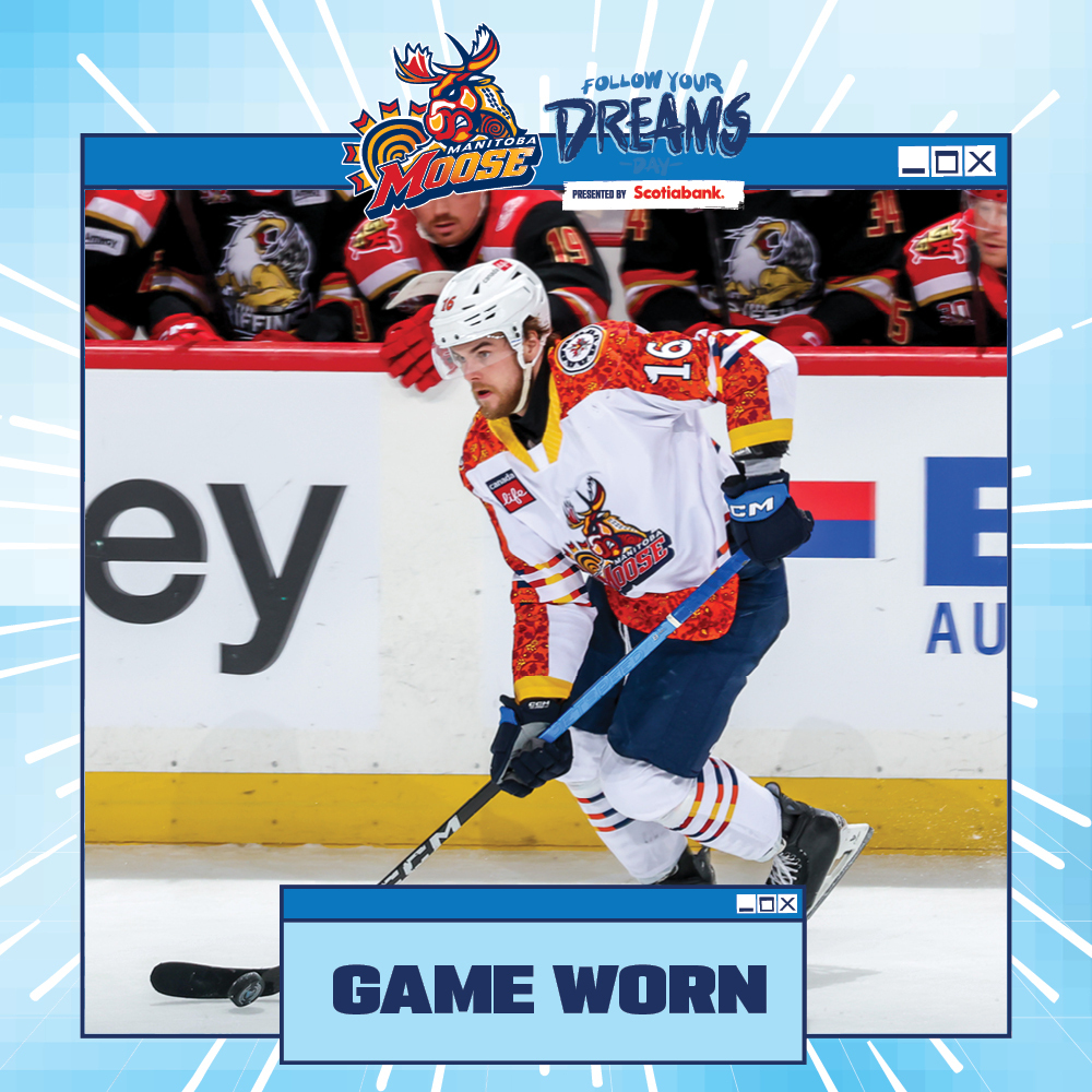 You are bidding on an authentic size 54 Manitoba Moose Follow Your Dreams Jersey. This unique Follow Your Dreams jersey was game worn on January 25, 2026, when the Manitoba Moose took on Grand Rapids Griffins. All proceeds from the auction will benefit Winnipeg Aboriginal Sports Achievement Center. All winning bidders will receive an Official Manitoba Moose Hockey Club Certificate of Authenticity and will have the option to have the player autograph their jersey at a date determined by the hockey club. Date and player availability to be determined. Local winners have the option to pick up this item.