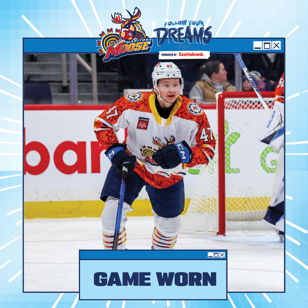 You are bidding on an authentic size 54 Manitoba Moose Follow Your Dreams Jersey. This unique Follow Your Dreams jersey was game worn on January 25, 2026, when the Manitoba Moose took on Grand Rapids Griffins. All proceeds from the auction will benefit Winnipeg Aboriginal Sports Achievement Center. All winning bidders will receive an Official Manitoba Moose Hockey Club Certificate of Authenticity and will have the option to have the player autograph their jersey at a date determined by the hockey club. Date and player availability to be determined. Local winners have the option to pick up this item.