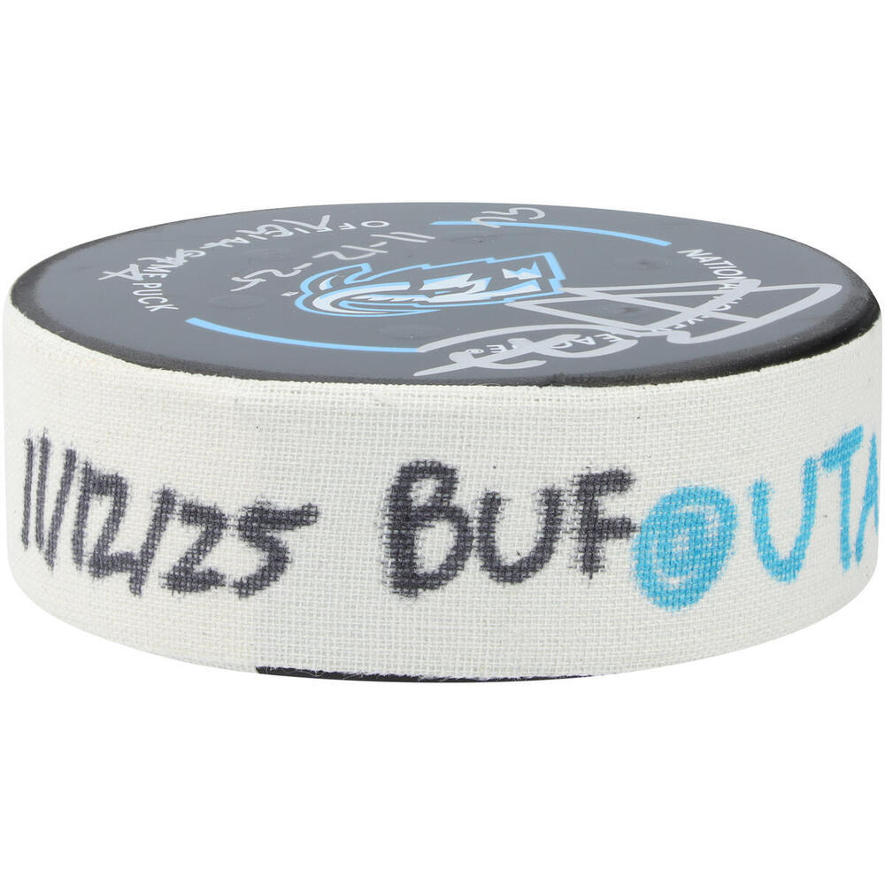 JJ Peterka Utah Mammoth Autographed Game-Used Puck vs. Buffalo Sabres on November 12, 2025 with Multiple Inscriptions