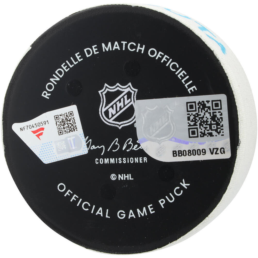 Own this JJ Peterka autographed game-used puck from the November 12, 2025 game against the Buffalo Sabres. This puck was collected by Fanatics Authentic in conjunction with the NHL and comes with an individually numbered, tamper-evident hologram. To ensure authenticity, the hologram can be verified online. This process helps to ensure that the product purchased is authentic and eliminates any possibility of duplication or fraud. Please note: This item is game-used and sold in "as-is" condition.
