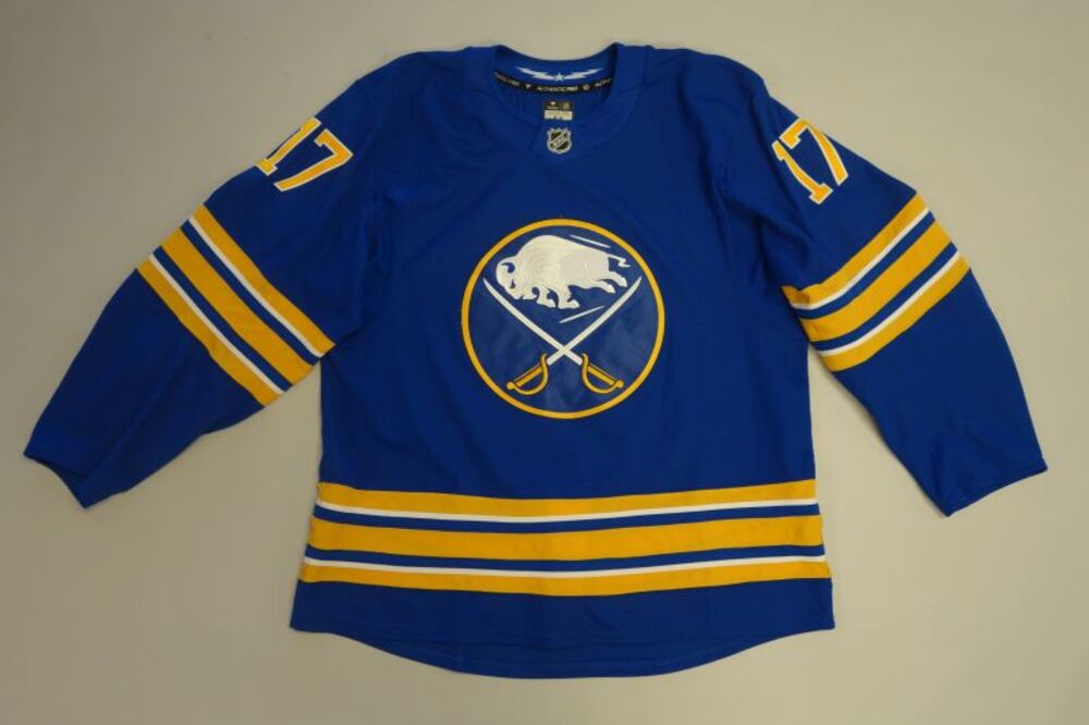 Jason Zucker 2025-26 Buffalo Sabres Set 1 Home Jersey - Worn for select games from October 9, 2025 through December 20, 2025. Size 56. Includes a certificate of authenticity. Proceeds to benefit the Buffalo Sabres Foundation.