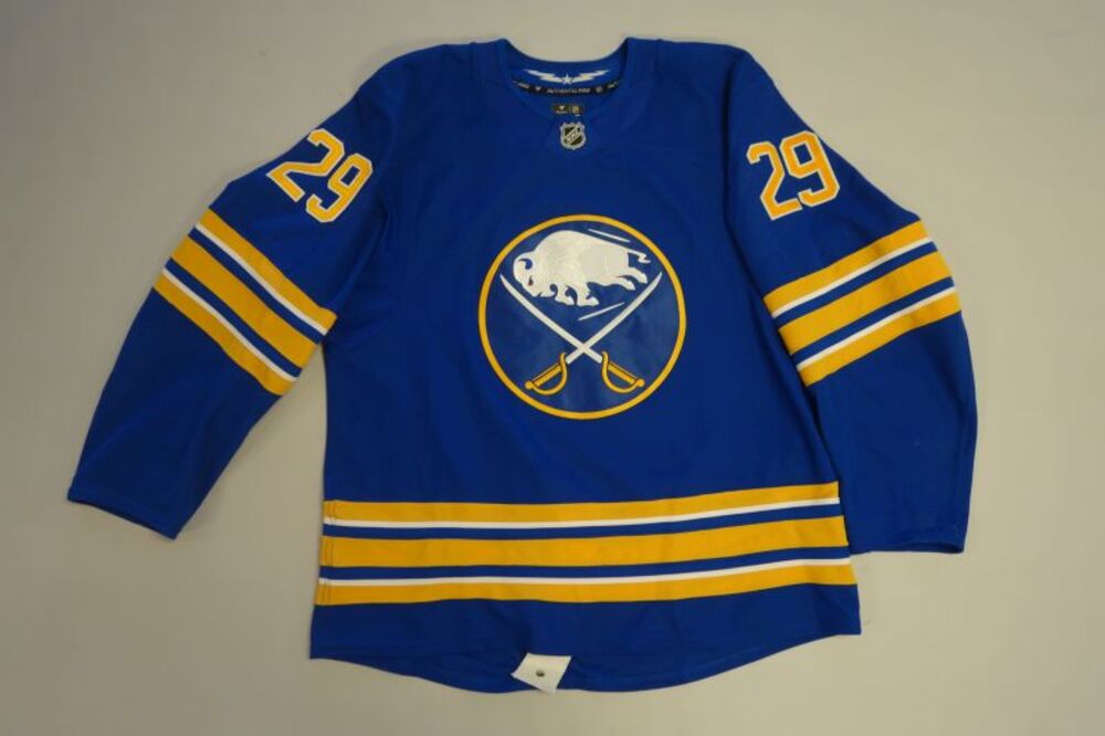 Beck Malenstyn 2025-26 Buffalo Sabres Set 1 Home Jersey - Worn for select games from October 9, 2025 through December 20, 2025. Size 56. Includes a certificate of authenticity. Proceeds to benefit the Buffalo Sabres Foundation.