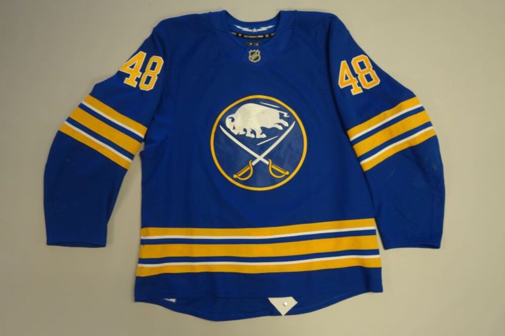 Tyson Kozak 2025-26 Buffalo Sabres Set 1 Home Jersey - Worn for select games from October 9, 2025 through December 20, 2025. Size 56. Includes a certificate of authenticity. Proceeds to benefit the Buffalo Sabres Foundation.