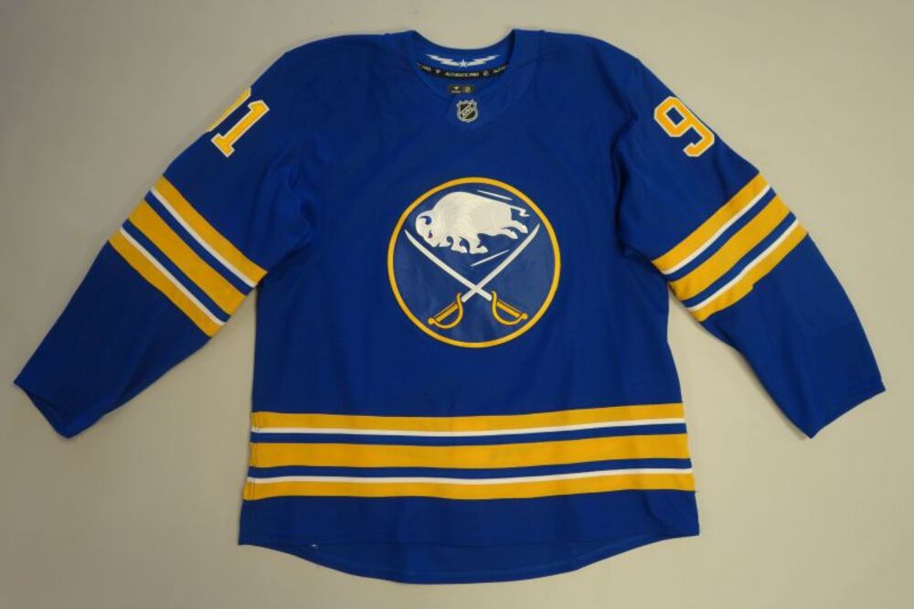 Josh Doan 2025-26 Buffalo Sabres Set 1 Home Jersey - Worn for select games from October 9, 2025 through December 20, 2025. Size 56. Includes a certificate of authenticity. Proceeds to benefit the Buffalo Sabres Foundation.