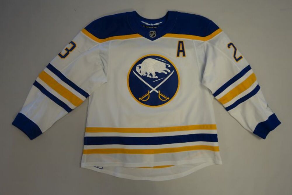 Mattias Samuelsson 2025-26 Buffalo Sabres Set 1 Away Jersey - Worn for select games from October 11, 2025 through January 3, 2026. Size 58. Includes a certificate of authenticity. Proceeds to benefit the Buffalo Sabres Foundation.
