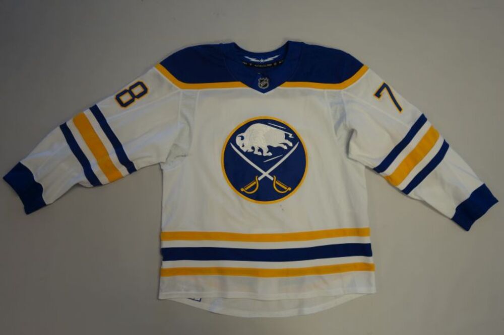 Jacob Bryson 2025-26 Buffalo Sabres Set 1 Away Jersey - Worn for select games from October 11, 2025 through January 3, 2026. Size 54. Includes a certificate of authenticity. Proceeds to benefit the Buffalo Sabres Foundation.