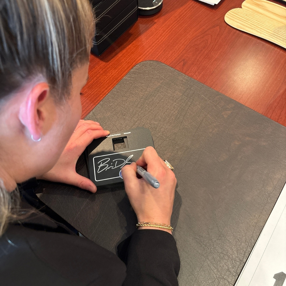 The Legends Line is an exciting collection of products sold by the Hockey Hall of Fame. This limited edition puck display stand featuring Brianna Decker (Player Inductee, 2025) includes her Inductee portrait on a 3D textured puck that can rest on a hard plastic stand, which is personally hand signed by Brianna herself.