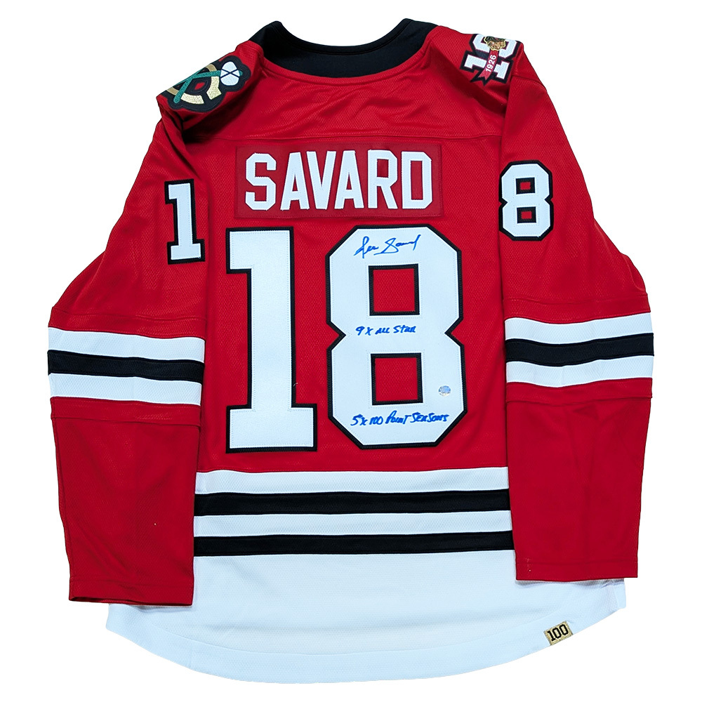 Denis Savard Autographed Chicago Blackhawks Fanatics Breakaway Jersey w/9X ALL STAR & 5X 100 POINT SEASONS Inscription