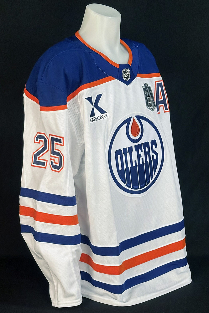 Welcome to the Edmonton Oilers Game Worn Jersey Program Online Auction! You are bidding on this Darnell Nurse #25 - 2025 Stanley Cup Final Edmonton Oilers "Game-Issued" White Set #1 Jersey - (GAME ISSUED ONLY / NOT WORN). The team wore this set of white road jerseys for Game #3 (June 9th, 2025) of the 2025 NHL Stanley Cup Finals vs the Florida Panthers however Nurse wears two jerseys per set one with the Assistant Captain's "A" and another without the letter. He wore the other jersey without the "A" during Game #3 of the series making this jersey up for auction an un-worn "Game Issued Jersey". This Fanatics-made Oilers jersey features the 2025 Stanley Cup Finals patch on the left chest and a special uniform set tag sewn into the inside bottom hem that reads "Edmonton Oilers, 2025 Stanley Cup Final, White Set #1" along with the jersey # and name of the respective player the jersey was issued to. It also has the facsimile signature of Jeff Lang the team's Head Equipment Manager. In addition, there is an official Edmonton Oilers Game-Worn Jersey Inventory tag with serialized # sewn into the inside bottom left hem. Tagging inside the collar includes a Made in Canada Size 58 imprint. This particular jersey was issued to Oilers defenceman Darnell Nurse however he did not wear it as he wore the other jersey without the "A" for the game making this one an un-worn "game issued" jersey only. It is crested with his #25 and surname on the back. It will come exactly as worn and will not be autographed. Since it was not worn it will have a heat pressed "Game Issued Only / Not Worn" tag applied to the jersey in the lower inside hem next to the set tag. In addition to the set tag certification mentioned above the jersey will come complete with a Letter of Authenticity from the Edmonton Oilers Hockey Club.