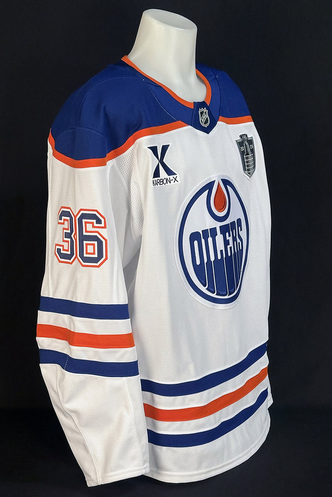 Welcome to the Edmonton Oilers Game Worn Jersey Program Online Auction! You are bidding on this John Klingberg #36 - 2025 Stanley Cup Final Edmonton Oilers Game-Worn White Set #1 Jersey. The team wore this set of white road jerseys for Game #3 (June 9th, 2025) of the 2025 NHL Stanley Cup Finals vs the Florida Panthers. This Fanatics-made Oilers jersey features the 2025 Stanley Cup Finals patch on the left chest and a special uniform set tag sewn into the inside bottom hem that reads "Edmonton Oilers, 2025 Stanley Cup Final, White Set #1" along with the jersey # and name of the respective player the jersey was issued to. It also has the facsimile signature of Jeff Lang the team's Head Equipment Manager. In addition, there is an official Edmonton Oilers Game-Worn Jersey Inventory tag with serialized # sewn into the inside bottom left hem. Tagging inside the collar includes a Made in Canada Size 58 imprint. This particular jersey was worn by Oilers defenceman John Klingberg and is crested with his #36 and surname on the back. As is to be expected, the game wear is very light overall considering the jersey was worn for only game three of the finals and was washed following the game. It will come exactly as worn and will not be autographed. In addition to the set tag certification mentioned above the jersey will come complete with a Letter of Authenticity from the Edmonton Oilers Hockey Club.