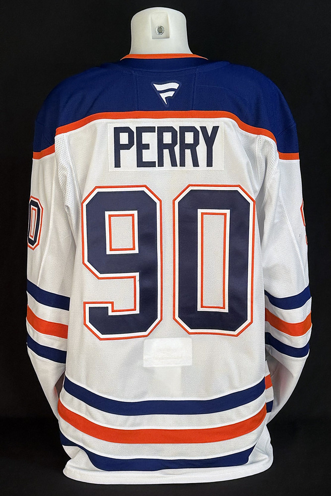 Welcome to the Edmonton Oilers Game Worn Jersey Program Online Auction! You are bidding on this Corey Perry #90 - 2025 Stanley Cup Final Edmonton Oilers Game-Worn White Set #1 Jersey. The team wore this set of white road jerseys for Game #3 (June 9th, 2025) of the 2025 NHL Stanley Cup Finals vs the Florida Panthers. This Fanatics-made Oilers jersey features the 2025 Stanley Cup Finals patch on the left chest and a special uniform set tag sewn into the inside bottom hem that reads "Edmonton Oilers, 2025 Stanley Cup Final, White Set #1" along with the jersey # and name of the respective player the jersey was issued to. It also has the facsimile signature of Jeff Lang the team's Head Equipment Manager. In addition, there is an official Edmonton Oilers Game-Worn Jersey Inventory tag with serialized # sewn into the inside bottom left hem. Tagging inside the collar includes a Made in Canada Size 58 imprint. This particular jersey was worn by Oilers forward Corey Perry and is crested with his #90 and surname on the back. As is to be expected, the game wear is very light overall considering the jersey was worn for only game three of the finals and was washed following the game. It will come exactly as worn and will not be autographed. In addition to the set tag certification mentioned above the jersey will come complete with a Letter of Authenticity from the Edmonton Oilers Hockey Club.
