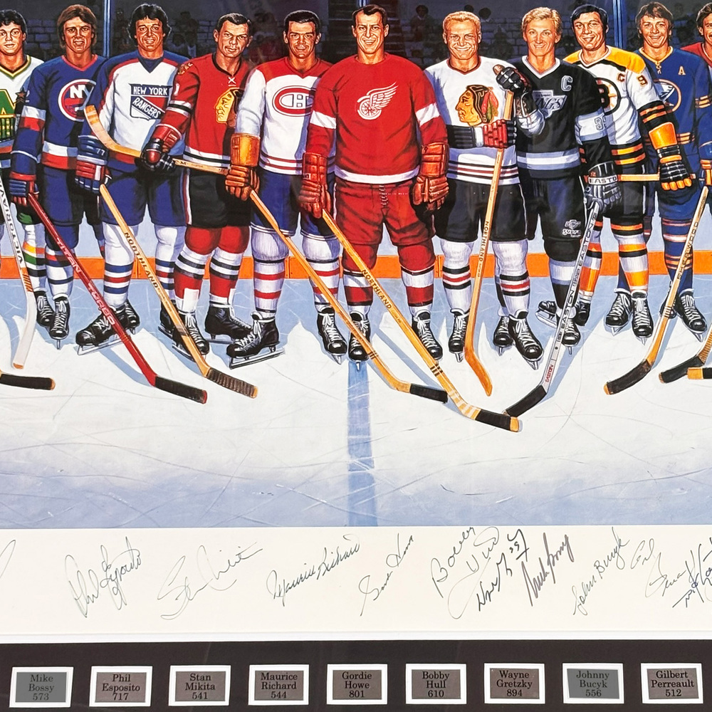 NHL 500 Goal Scorers Multi-Signed Limited-Edition Framed Lithograph - Complete 19 Signatures (PP #1/200)