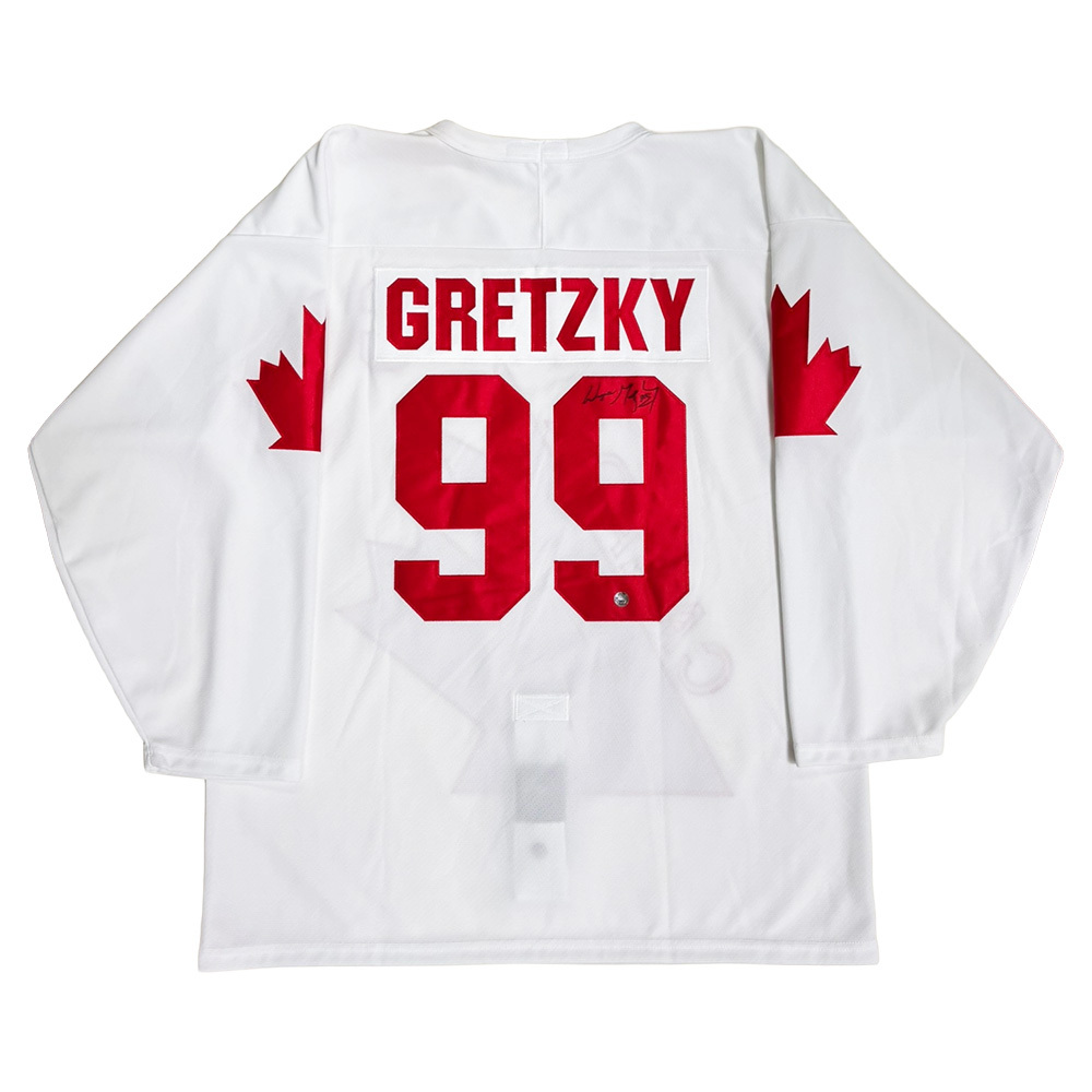 Bid on this outstanding Team Canada jersey (size L) signed by "The Great One" - Wayne Gretzky. Gretzky is widely regarded as the greatest player in hockey history, captaining Team Canada in multiple international competitions. A must-have iconic jersey complete with a captain's "C" and bold, black signature on the reverse number.
