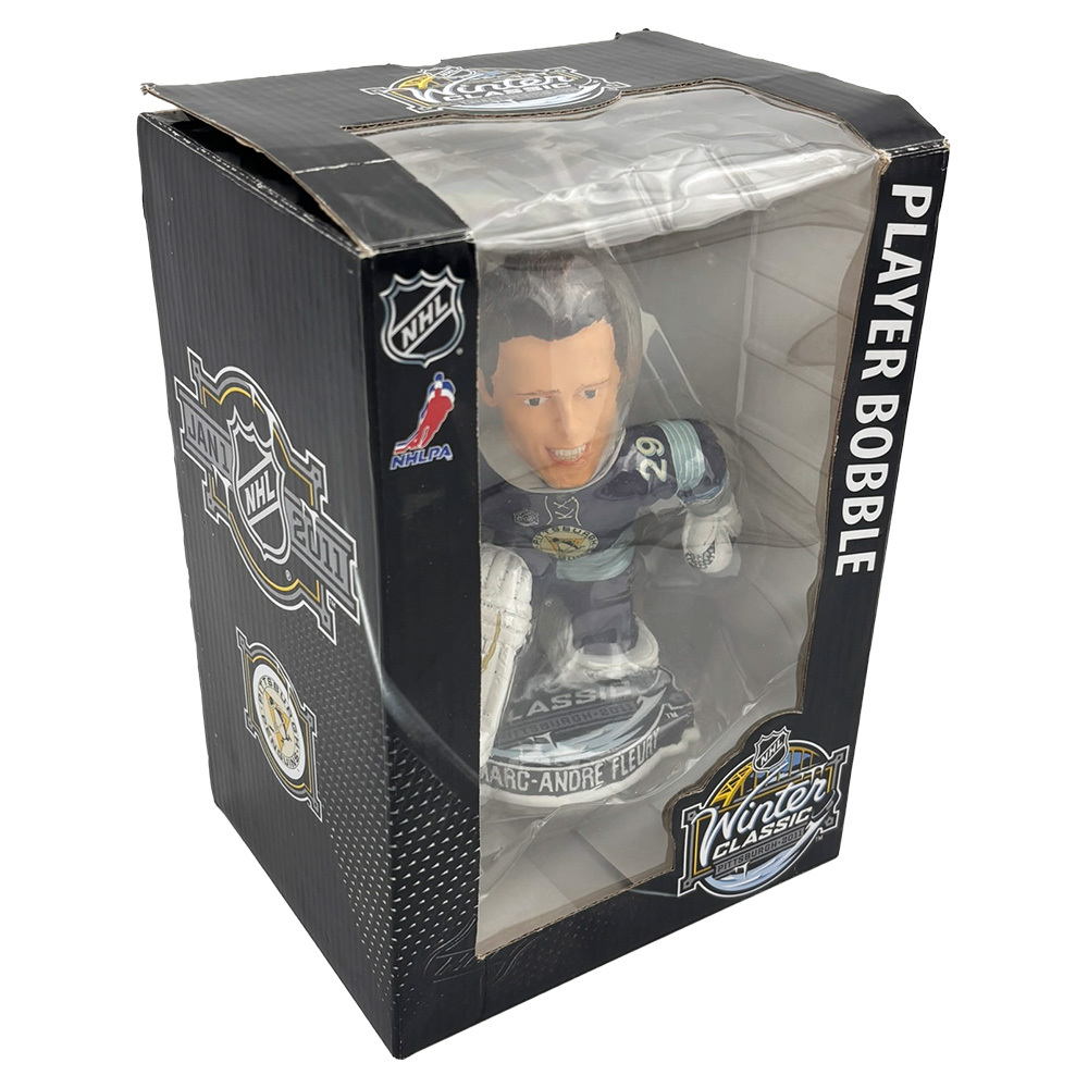 Bid on this rare 2011 NHL Winter Classic bobblehead signed by NHL legend - Marc-André Fleury. Fleury helped lead the Penguins to the 2009 Stanley Cup championship and ranks among the winningest goaltenders in NHL history. This Forever Collectibles "Legends of The Ice" limited-edition bobblehead stands approximately 6" tall and features a bold autograph on the stick.