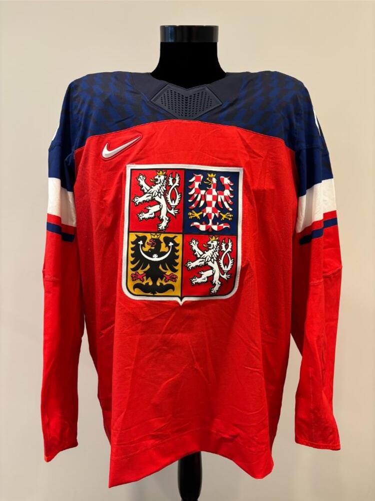 Jersey was worn by Czechia Men's Olympic Ice Hockey Team Player David Kampf during Czechia's preliminary round 3-2 victory over Denmark on February 17, 2026 as a part of the 2026 Milano Cortina Winter Games in Milan, Italy. This item was collected on-site in Milan on behalf of the NHLPA and National Hockey League.