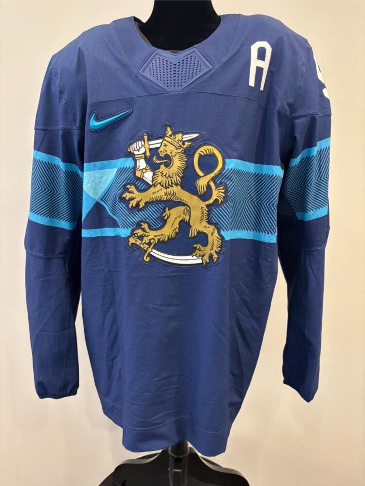 Mikko Rantanen Finland Game-Used Blue Jersey worn v. Sweden on February 13, 2026, as a part of the 2026 Milano Cortina Winter Games.