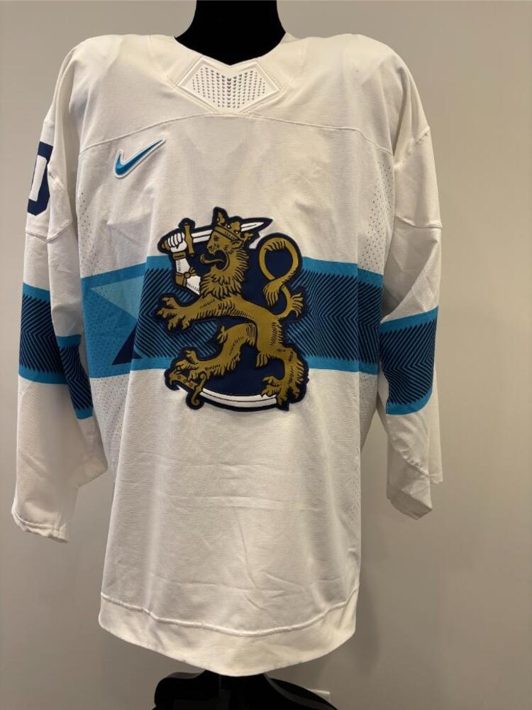 Jersey was worn by Finland Men's Olympic Ice Hockey Team Player Joonos Korpisalo during Finland's Semifinal round game against Canada on February 20, 2026 as a part of the 2026 Milano Cortina Winter Games in Milan, Italy. This item was collected on-site in Milan on behalf of the NHLPA and National Hockey League.