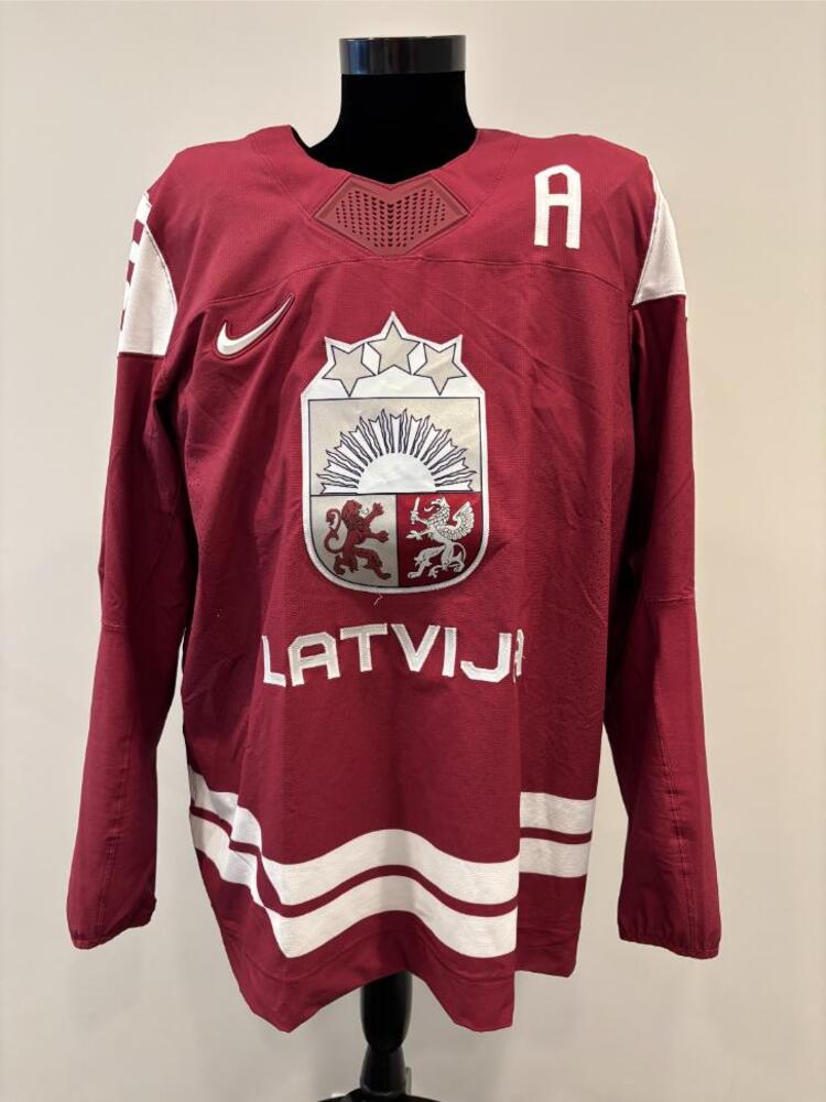 Zemgus Girgensons Latvia Game-Used Red Jersey worn v. USA on February 12, 2026, as a part of the 2026 Milano Cortina Winter Games.