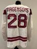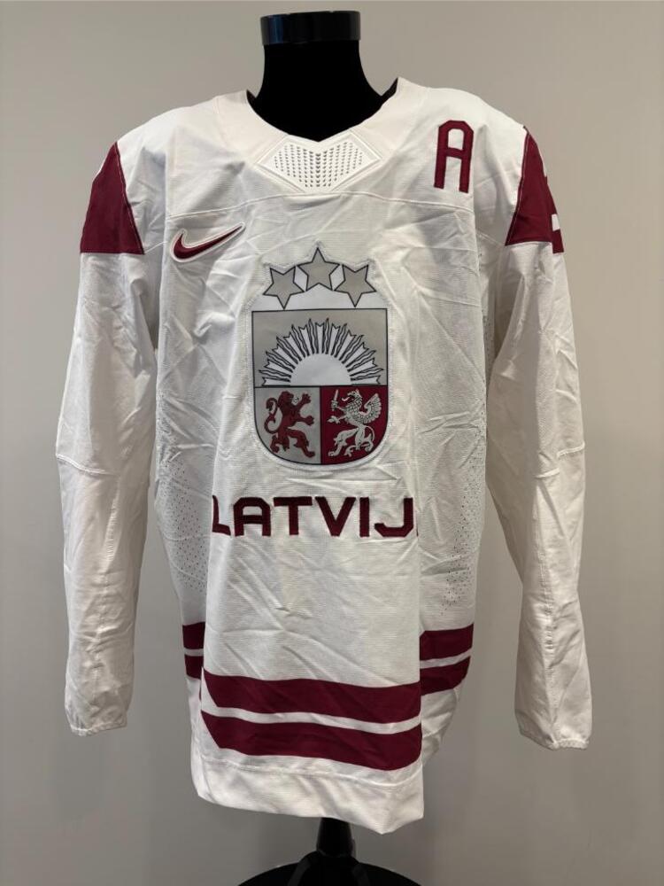 Zemgus Girgensons Latvia Game-Used White Jersey worn v. Denmark on February 15, 2026, as a part of the 2026 Milano Cortina Winter Games.