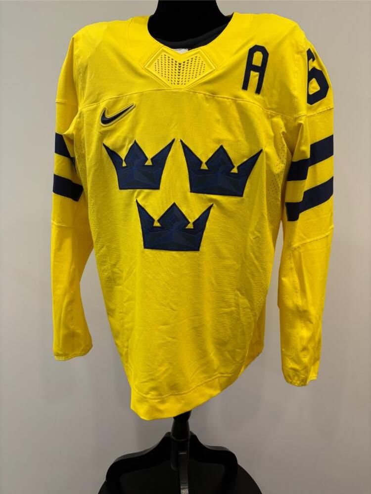 Jersey was worn by Sweden Men's Olympic Ice Hockey Team Player Erik Karlsson during Sweden's preliminary round game against Finland on February 13, 2026 as a part of the 2026 Milano Cortina Winter Games in Milan, Italy. This item was collected on-site in Milan on behalf of the NHLPA and National Hockey League.