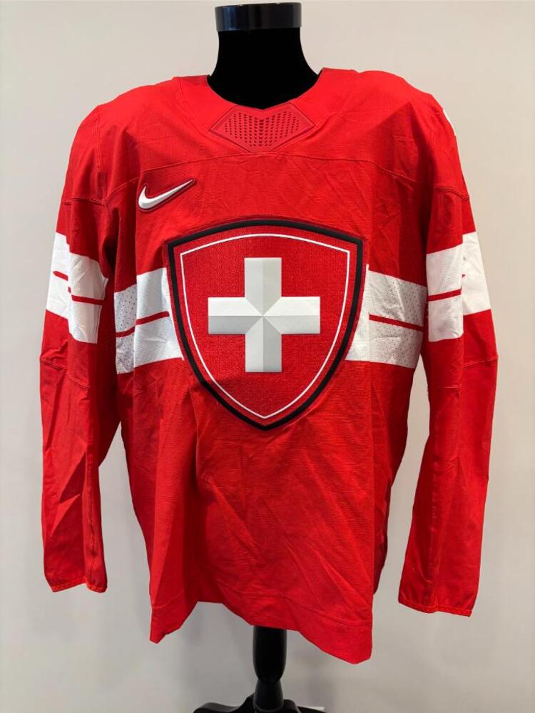 Jersey was worn by Switzerland Men's Olympic Ice Hockey Team Player Philipp Kurashev during Switzerland's 4-3 OT preliminary round victory over Czechia on February 15, 2026 as a part of the 2026 Milano Cortina Winter Games in Milan, Italy. This item was collected on-site in Milan on behalf of the NHLPA and National Hockey League.