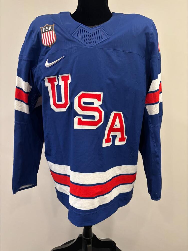 Jersey was worn by USA Men's Olympic Ice Hockey Team Player Vincent Trocheck during the Unites States preliminary round 6-3 victory over Denmark on February 14, 2026 as a part of the 2026 Milano Cortina Winter Games in Milan, Italy. This item was collected on-site in Milan on behalf of the NHLPA and National Hockey League.