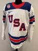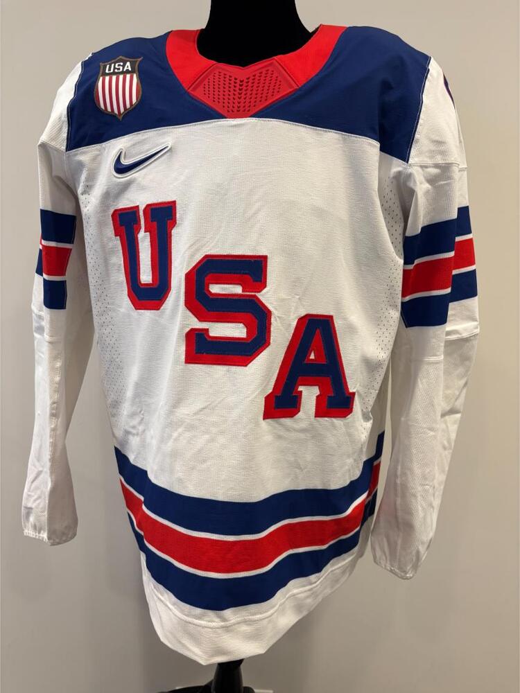 Jack Hughes USA Game-Used White Jersey worn v. Germany on February 15, 2026, as a part of the 2026 Milano Cortina Winter Games.