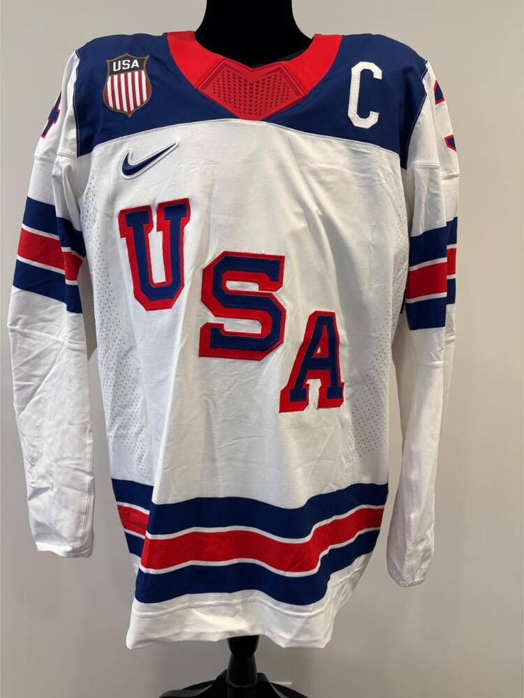 Jersey was worn by USA Men's Olympic Ice Hockey Team Player Auston Matthews during the Unites States preliminary round 5-1 victory over Germany on February 15, 2026 as a part of the 2026 Milano Cortina Winter Games in Milan, Italy. This item was collected on-site in Milan on behalf of the NHLPA and National Hockey League.