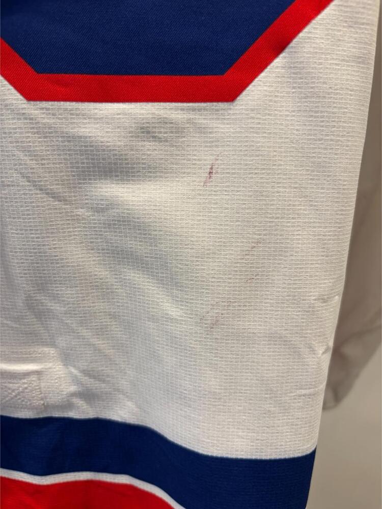 Please note: In some situations, a player will wear multiple jerseys during a game. These game worn jerseys are verified to have been worn for at least (1) one period of the specified game These jerseys are game-used and sold in as-is condition, actual wear and usage of jerseys received will vary.