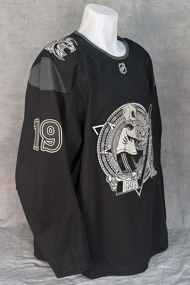 Welcome to the Edmonton Oilers Community Foundation 2026 Online Charity Auction! Show your support for the Foundation and the great charitable initiatives they undertake in Oil Country by bidding on this Adam Henrique #19 - Autographed 2025-26 Edmonton Oilers Dia de los Muertos (Day of the Dead) Ltd Edition Fanatics Practice Jersey (Autographed Only / Not Worn). The Edmonton Oilers held their annual Dia de los Muertos (Day of the Dead) game on Saturday, November 1, 2025 when the team hosted the Chicago Blackhawks at Rogers Place. With the Oilers Dia de los Muertos logos and design elements on full display throughout the arena, this cultural celebration included vibrant pageantry paying tribute to this unique holiday. Although NHL teams are no longer permitted to wear cause or celebration based jerseys during the pre-game warm up a complete set of these special jerseys were made to commemorate the occasion. They were then autographed by the players with the purposes of auctioning off all in support of charity! These Fanatics made pro quality black with white trim practice jerseys with fight strap were customized with the very special Edmonton Oilers Dia de los Muertos logo and design elements. The logos were designed by Cristoval Castillon, Design Lead, OEG Sports & Entertainment. "I've always wanted to bring a little bit of Mexican representation to the Oilers and with our Dia de los Muertos game, I found an opportunity to highlight aspects of the traditional holiday such as the calaca - the skeletal figure featured on the main crest of the Oilers Dia de los Muertos jersey - most popular in modern Day of the Dead costumes and decorations," Castillon said. "The main crest is flanked on the left shoulder of the jersey by our friend Hunter the Lynx, who adorns a quetzal feathered headdress once worn by those in high power, along with their deities, within ancient Aztec civilization. The 'Petroleros' logo sits upon the right shoulder adorned with bright sunflowers and marigolds which are highly symbolic of Mexico. On the back of the jersey the respective player's surname is displayed in blue letters on a matching white name bar. Their respective jersey number is also displayed on the back and sleeves in the colorful matching number pattern. This particular jersey is a size 56 and is indicated as such in the collar. Last but not least the jersey has been nicely autographed in silver paint marker on the back number by Adam Henrique! Please note this is an actual NHL practice-weight on-ice authentic jersey (NOT PLAYER WORN) with all lettering, numbering and crests professionally stitched onto the jersey. The jersey will come complete with a Letter of Authenticity from the Edmonton Oilers Hockey Club and official Edmonton Oilers 2025-2026 Season "DIA DE LOS MUERTOS NIGHT, Autographed Jersey Set" Tag including their # and surname sewn into the inside bottom hem of the jersey.